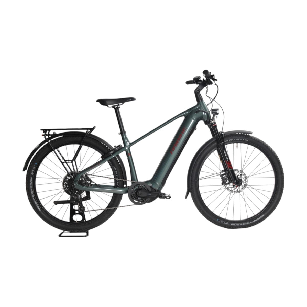 - Alumiinirunko ja SR Suntour 32 -etuhaarukka (100 mm): Kestävä alumiinirunko ja SR Suntour 32 -etuhaarukka 100 mm joustolla tarjoavat mukavuutta ja tehokasta iskunvaimennusta poluilla, tukien pyörän monipuolista käyttöä.