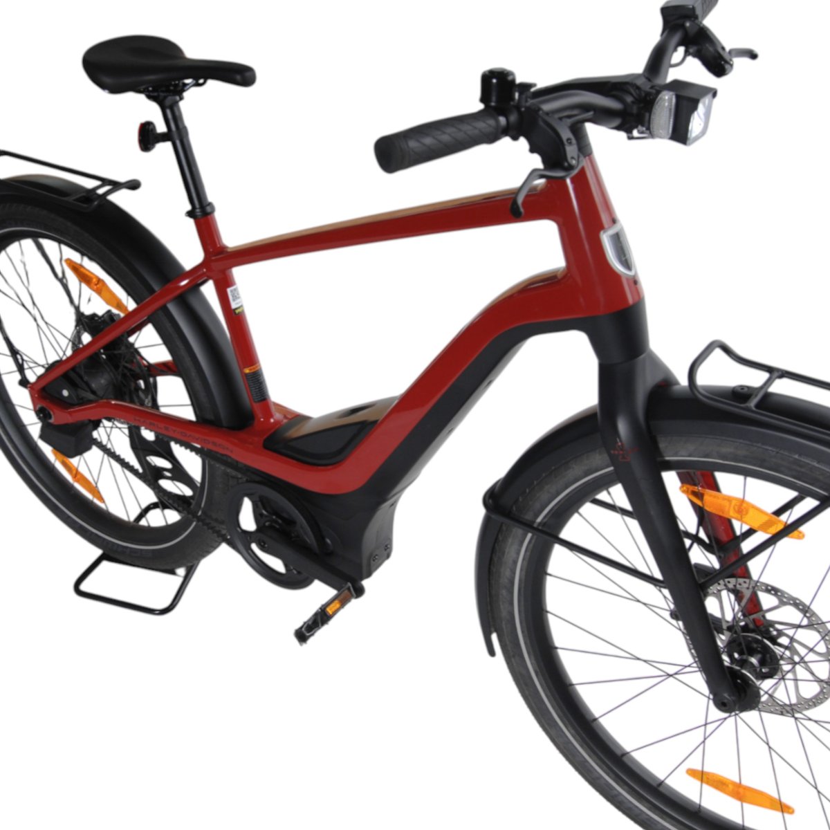 - 5" vanteet ja Schwalbe Super Moto-X -renkaat: Kestävät 27.5" alumiinivanteet ja leveät Schwalbe Super Moto-X -renkaat tarjoavat erinomaisen pidon ja mukavuuden erilaisilla kaupunkiympäristöillä.
